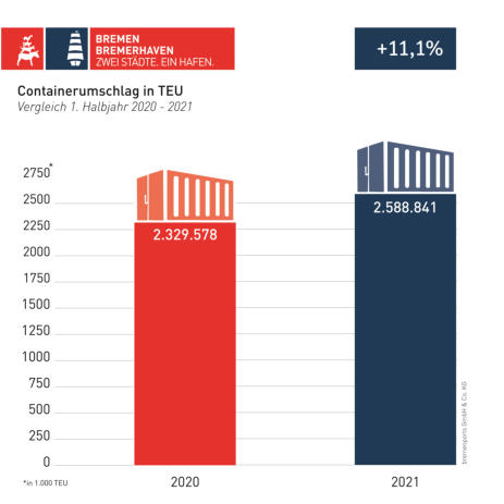 440.000 TEU. Noch erfolgreicher waren die bremischen Häfen in einem anderen Bereich: 934.000
